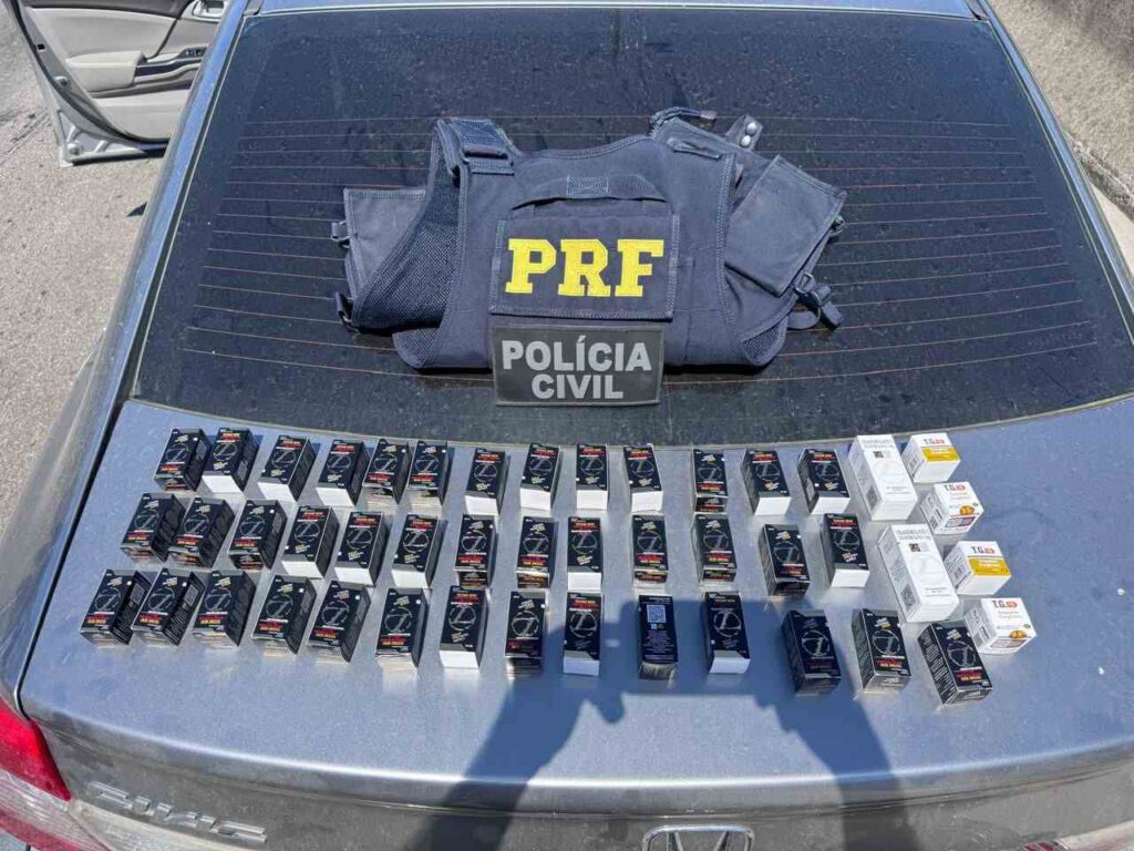 Segundo as informações das autoridades, o suspeito estava em um Honda Civic transportando os produtos, que seriam distribuídos na região.